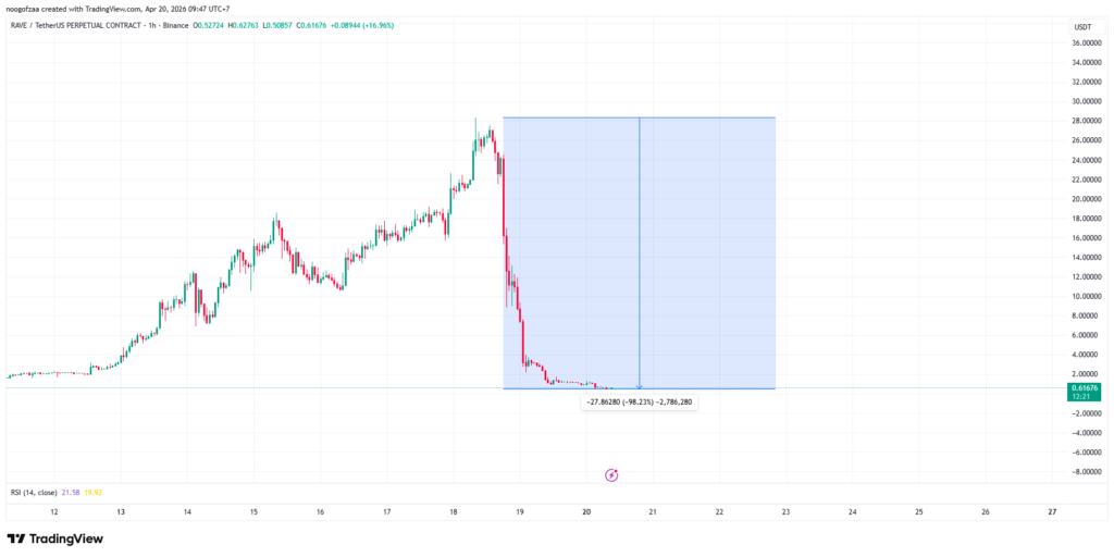 กลายเป็นฝันร้ายของนักลงทุนคริปโตสายซิ่งทันที เมื่อเหรียญ RAVE โปรเจกต์ความบันเทิงระดับโลกที่เคยเป็นดาวรุ่งพุ่งแรงราคาเริ่มต้นพุ่งจากจุดต่ำสุดที่ 0.2 สู่จุดสูงสุดที่ $28 กลับทำราคาดิ่งนรก ร่วงลงกว่า 98% ภายในวันเดียว ส่งผลให้มูลค่าความเสียหายโดยรวมพุ่งสูงถึง 2 แสนล้านบาท