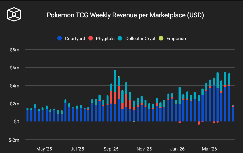 - ตลาดซื้อขาย Pokémon TCG บนบล็อกเชนกลับมาคึกคักอย่างหนัก โดยสัปดาห์ล่าสุดมียอดทำธุรกรรมแตะ 5.38 ล้านดอลลาร์ และเป็นการเติบโตต่อเนื่องติดต่อกันถึง 6 สัปดาห์